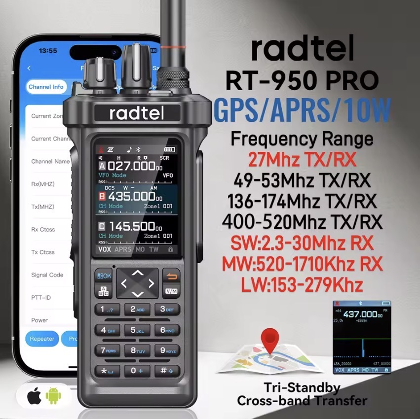 Radtel RT950 PRO Green - Full Band VHF/UHF/HF/CB