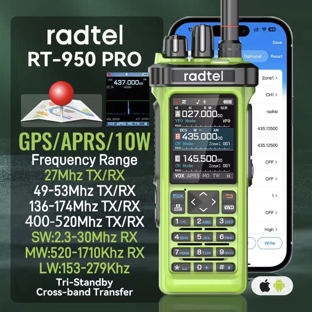 Radtel RT950 PRO Green - Full Band VHF/UHF/HF/CB